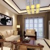 客厅的打造有种出淤泥而不染的感觉,清新靓丽的环境氛围中不失奢华大气感,白色的石膏板吊顶实木的框架打造增加了更多的立体感装饰,大型的吊灯装饰为客厅的大气奢华感带来更多的韵味,白色的瓷砖地面装饰和一个白色的灰色边框地毯提升了客厅的舒适感,浅灰色的沙发和实木框架的整体家居装饰无不一一展示着温馨舒适之感,沙发的背景墙设计新颖又创新,大幅的荷花墙面装饰给人一种清新和典雅的感觉,透漏着的古典韵味非常的浓烈,实木的家具造型更是增加了空间的中式装饰美感。
